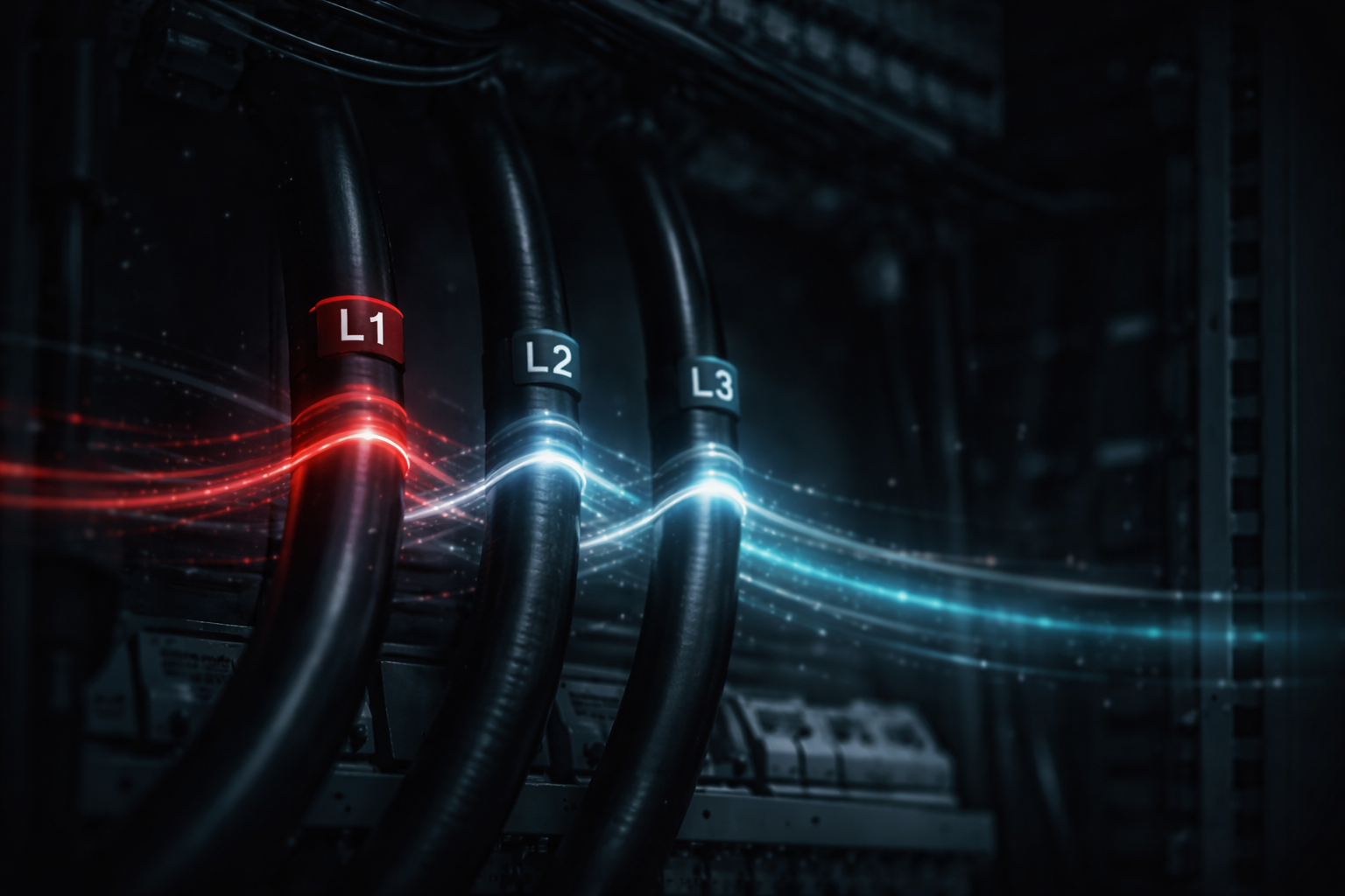 Der Sensor erfasst die Ströme aller drei Phasen über externe Stromwandler (Clip-on-Prinzip).
