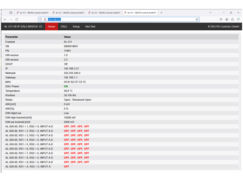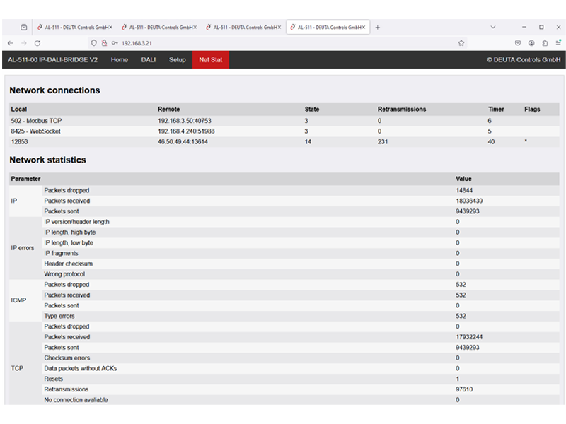 Über den integrierten Webserver haben Sie Zugriff auf den Datenverkehr auf dem DALI Bus sowie den Status der Ethernet-Kommunikation in Echtzeit. Vergessen Sie andere proprietäre Lösungen.